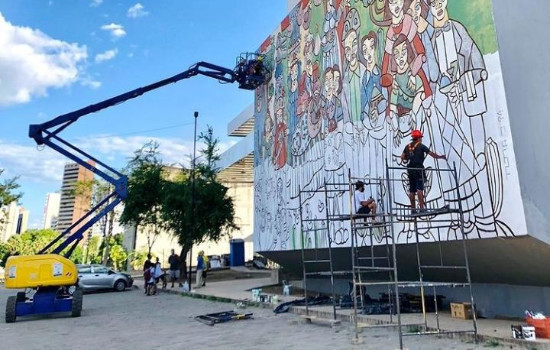 A intervenção é coordenada por Nonato Oliveira e executada por uma equipe especializada em arte urbana, incluindo o artista Washington Gabriel. O painel, que tem 27 anos de história, já passou por duas restaurações. Na última, Nonato Oliveira não participou e a obra acabou sofrendo alterações na composição das cores.