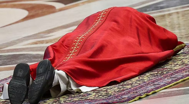 O gesto integra um dos momentos mais tradicionais da liturgia da Paixão de Cristo. Ao se deitar no chão, em silêncio absoluto, o pontífice expressa humildade, adoração, submissão a Deus e luto pela morte de Jesus Cristo.
