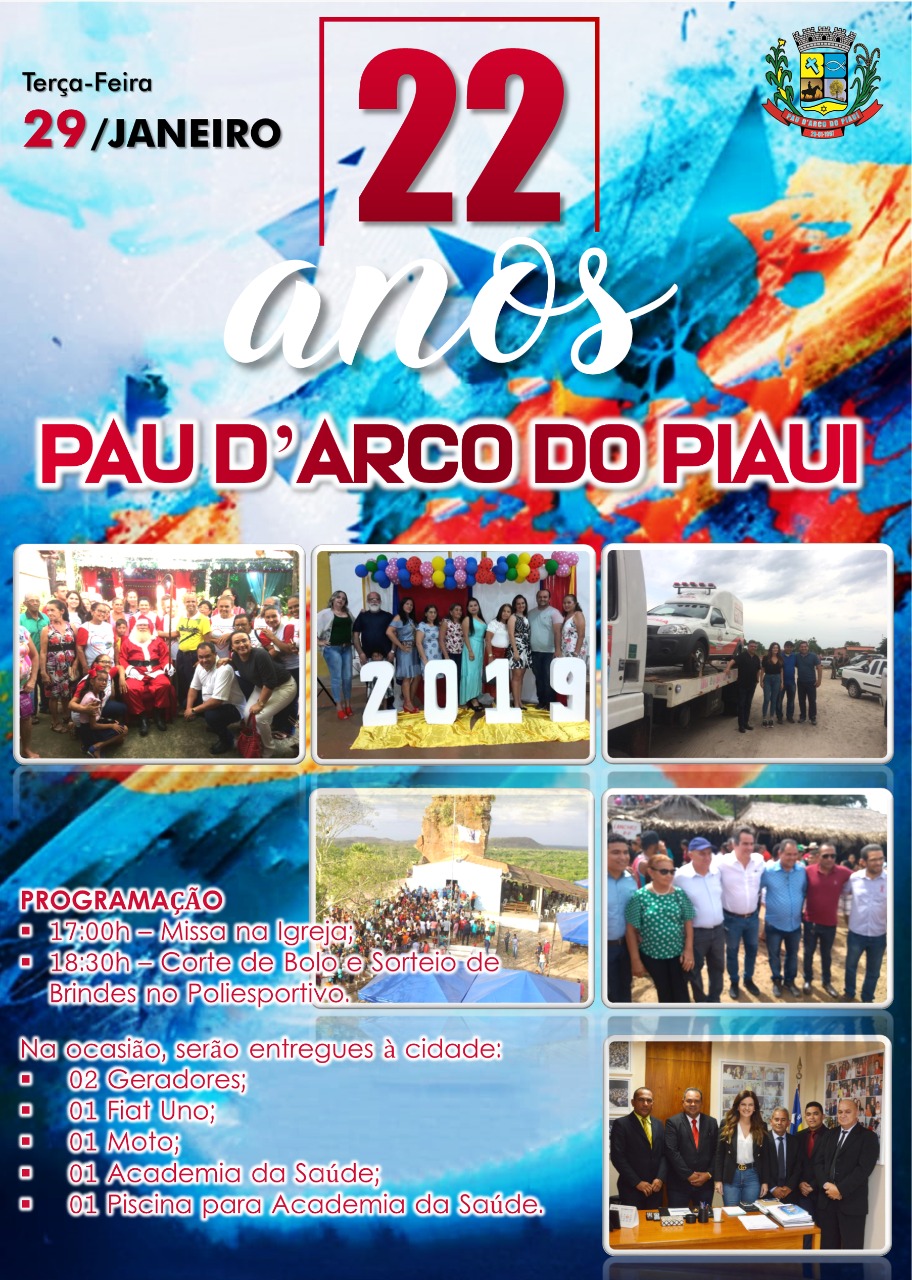 O prefeito de Pau D’arco do Piauí, Nilton Bacelar, comemora no próximo dia 29/01 (terça-feira), com os paudarcopienses, 22 anos de emancipação do município, que foi desmembrado de Altos e fica a 70 km da capital.