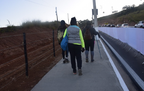 “É bem difícil e muito complicado. Faltando uns 20 km para chegar tive que parar e entrar no ônibus. São muitas as dores no corpo e nas pernas. Mas, estou muito feliz, foi muito bom”, conta o entregado, Samuel Vilela de Souza.