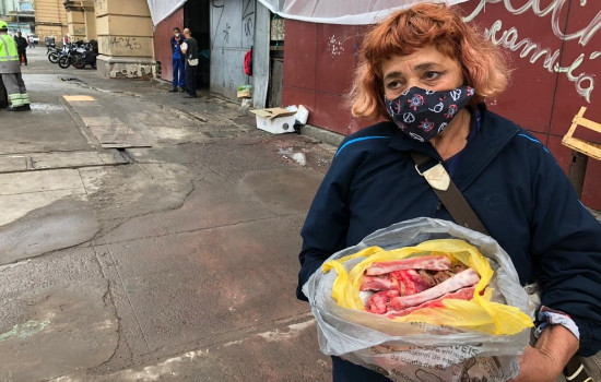 Do lado de dentro de um dos principais pontos turísticos de São Paulo, boxes e restaurantes vendem frutas, verduras, carnes, peixes, castanhas. Do lado de fora do Mercadão Municipal, no Centro de São Paulo, um flagrante da luta contra a fome: pessoas buscando ossos de carne na caçamba de descarte do mercado.