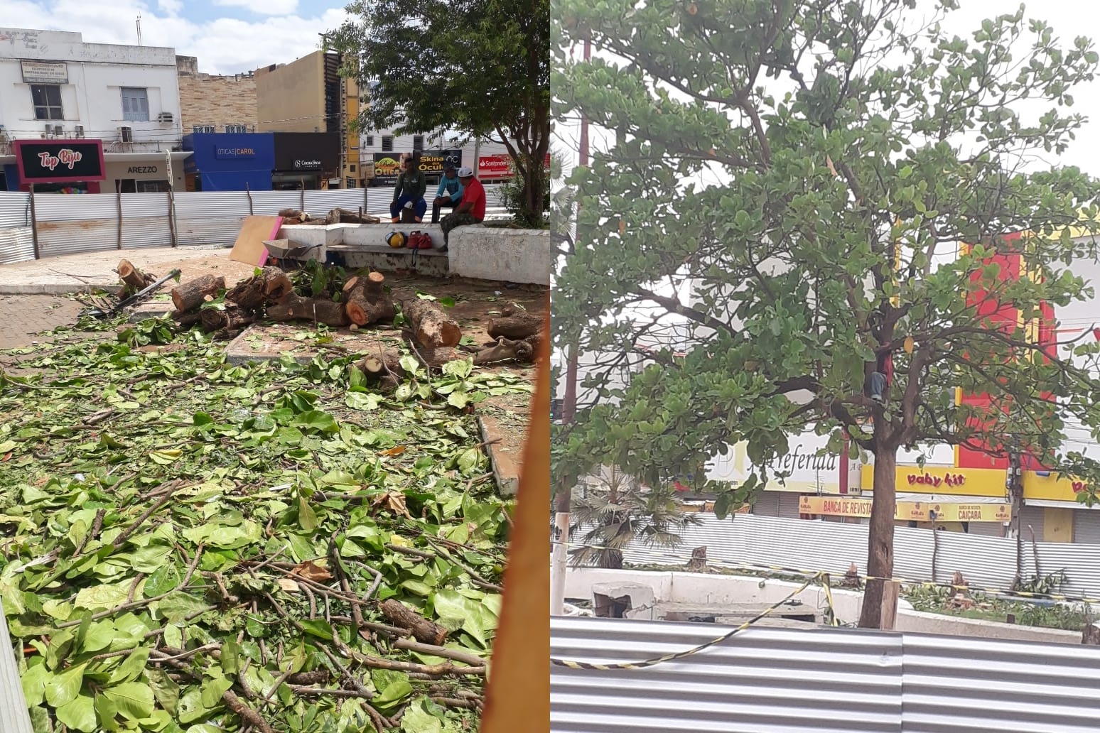 Nos últimos dias a Prefeitura de Picos começou a reforma da Praça Félix Pacheco, e assim como na Josino Ferreira, as arvores do local estão sendo dizimadas.