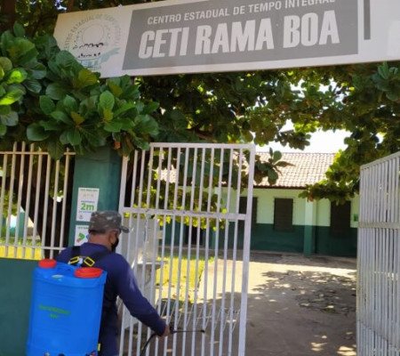 Outra escola que passou por sanitização foi o CETI Rama Boa. A escola fica localizada em Altos e conta com mais de 300 alunos que estão assistindo aulas de forma remota, comparecendo ao centro de ensino em momentos especiais, como nas entregas dos kits alimentação e chips de celulares.