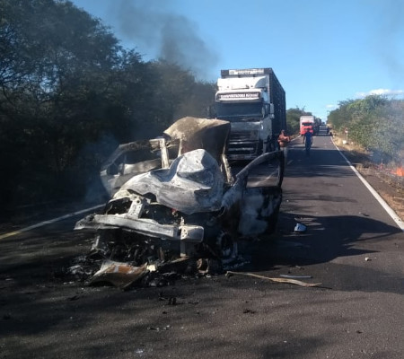 “Os policiais rodoviários federais foram acionados para atender esse acidente que foi do tipo saída de leito carroçável, seguido de colisão frontal e incêndio. No local, duas pessoas que não foram identificadas vieram a óbito carbonizadas”, afirmou o inspetor.