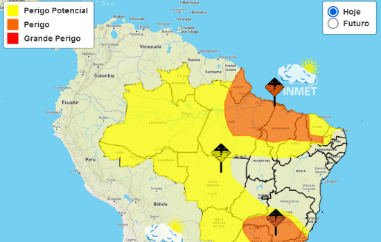 Cidades atingidas pelo aviso de perigo (alerta laranja) do INMET