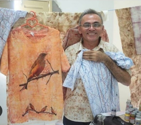 Severino, que é natural de Altos, apesar de já trabalhar com estamparia usando tingimento artificial, nunca havia utilizado esse tipo de material para fins de produção. "Eu comecei a trabalhar com estamparia com tintura normal depois aprendi a extrair o corante natural sozinho. Sou artesão, mas venho me dedicando a estamparia com uso natural porque crio coisa natural e que não está ainda no mercado", explica. Hoje, o artista produz camisetas, tecidos, vestidos, blusas, lenços. "Não tem essa questão de peça, trabalho com qualquer material de tecido", frisa.