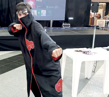 “Amo, sinceramente, essa cultura e percebo que está crescendo. Estou vestido de ‘Hidan’, do desenho Naruto, sua função é capturar bijus—, criaturas que estão dentro dos personagens”, comenta ele.