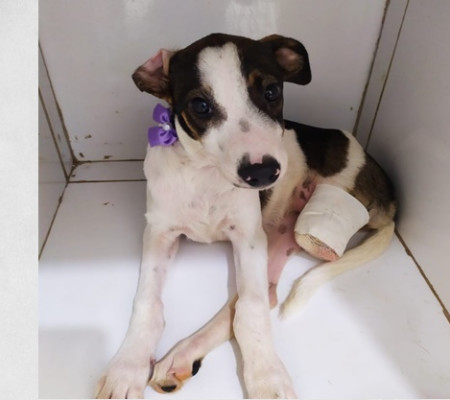 A cadela perdeu muito sangue e teve que ficar internada em uma clínica veterinária da cidade. Devido a gravidade dos ferimentos o membro foi totalmente amputado. Ela deve receber alta nesta quinta-feira (26), com destino ao seu novo lar.