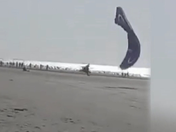 O piloto estava sobrevoando a praia, que estava bastante movimentada, até que, repentinamente, ele perde altitude e cai direto na areia.