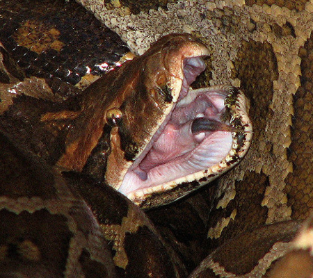 Uma píton de 4 metros de comprimento acabou regurgitando uma cabra de 40 quilos na província de Fujian, localizada no sudeste da China. Pítons regurgitam quando se sentem ameaçadas.