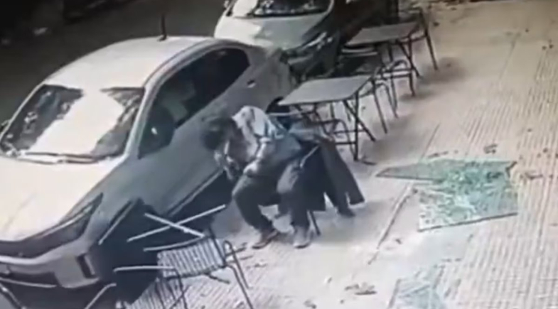 O que seria apenas um café da tarde se transformou em uma experiência de quase morte. Um vídeo divulgado na última quinta-feira (8) mostra um homem de 50 anos sentado à mesa de uma cafeteria no bairro de Palermo, em Buenos Aires, quando uma placa de vidro “cai do céu” e o atinge.