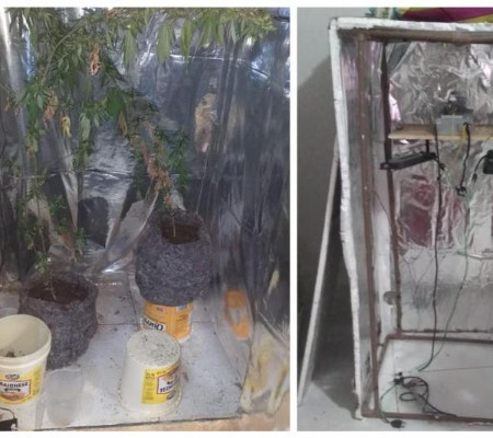 Após a prisão, agentes da Polícia Civil entraram na residência do acusado para averiguar e encontraram em um dos quartos duas estufas de plantação de maconha.