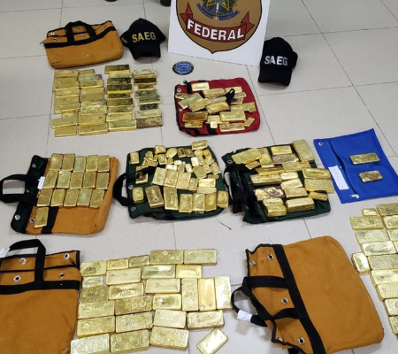 As polícias Federal e Militar apreenderam 111 kg de ouro e um avião monomotor no Aeroporto Santa Genoveva, em Goiânia, na noite desta segunda-feira (10). Segundo a PF, a carga foi avaliada em R$ 18 milhões. Com informações sdo G1.