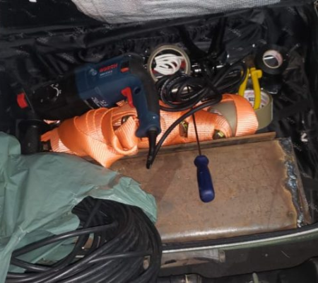 No carro, foram encontrados diversos tipos de explosivos, uma furadeira, uma marreta e uma picareta. Todo o material apreendido foi apresentado na Delegacia de Polícia de Zé Doca para ser feita a perícia, e tomada as devidas providências.