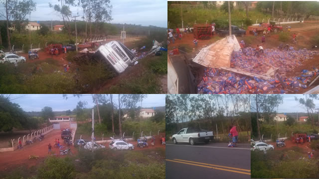 Numa ação rápida a polícia militar de Picos conseguiu chegar ao local onde se encontrava uma carreta virada carregada de rações com sacas de 20kg, no momento em que várias pessoas saqueavam a carga. Eram veículos de passeio e de carga, saindo lotado de ração sem pagar nenhum centavo pelo produto. O motorista da carreta fez apelos para que não tocassem na carga, mas nada adiantou. Muitos levaram duas ou mais carradas de ração.