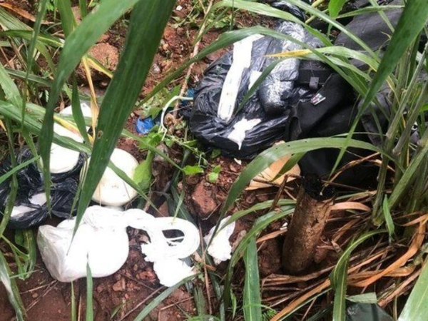 Explosivos e outros materiais encontrados em mata do Gama (DF). (Foto: Divulga.ção-PMDF)