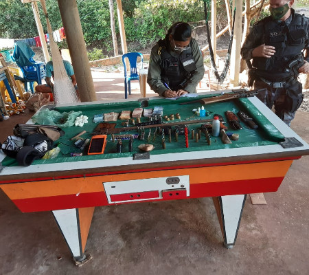 A Polícia Militar da cidade de União apreendeu nesta segunda-feira, 01 de junho, diversos objetos, dinheiro, armas e munições em um bar próximo a Barragem Filinto Rêgo. As informações são do Clique União.