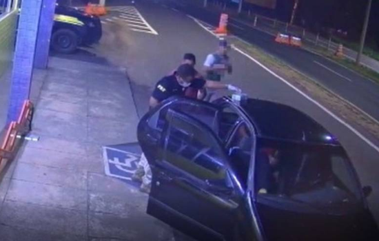 Nas imagens registradas pelas câmeras do local, mostram o passageiro desembarcando do automóvel e informando aos PRFs que a mulher estaria dando à luz no interior veículo. De imediato, o agente foi até o carro onde a mulher já se encontrava em trabalho de parto avançado.