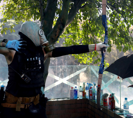 Um novo protesto que tomou as ruas de Hong Kong acabou em violência neste domingo (17). A polícia disparou bombas de gás lacrimogêneo contra os manifestantes, que revidaram com bombas de gasolina e flechas. Os confrontos explodiram durante a noite e continuaram pela manhã.