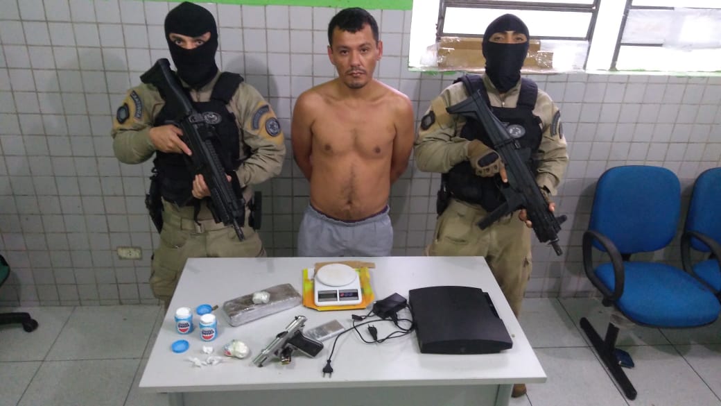Segundo o Major Audivan Nunes, Francisco Fortes Delmiro Neto, de 30 anos, é um traficante e assaltante conhecido no município de Altos, foi preso em posse de uma pistola e drogas no bairro Lorival Parente na zona Sul de Teresina. O outro preso identificado como, Kleyton Codeiro já tinha passagem pela polícia pelo crime de furto e foi preso em posse de drogas, balança de precisão e arma de fogo, na região do Parque Sul.