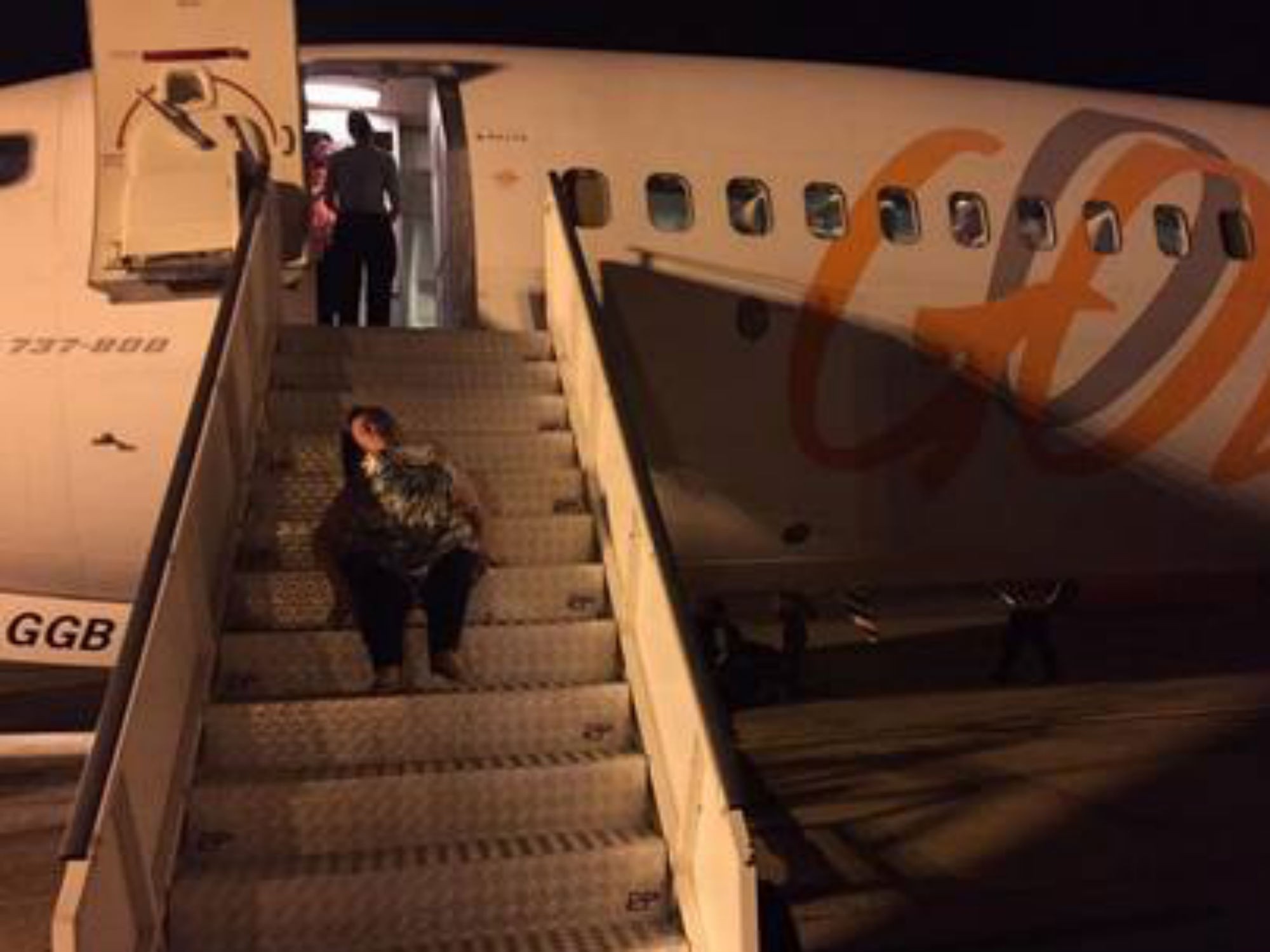 Katya Hemelrijk, 38 anos, precisou se arrastar por uma escada para conseguir embarcar em um avião da Gol no Aeroporto de Foz do Iguaçu, no Paraná, na madrugada desta segunda-feira (1º). Katya, que é coordenadora de comunicação de uma empresa de cosméticos, viajava para São Paulo, cidade onde mora e trabalha, e relatou o episódio em sua página do Facebook.