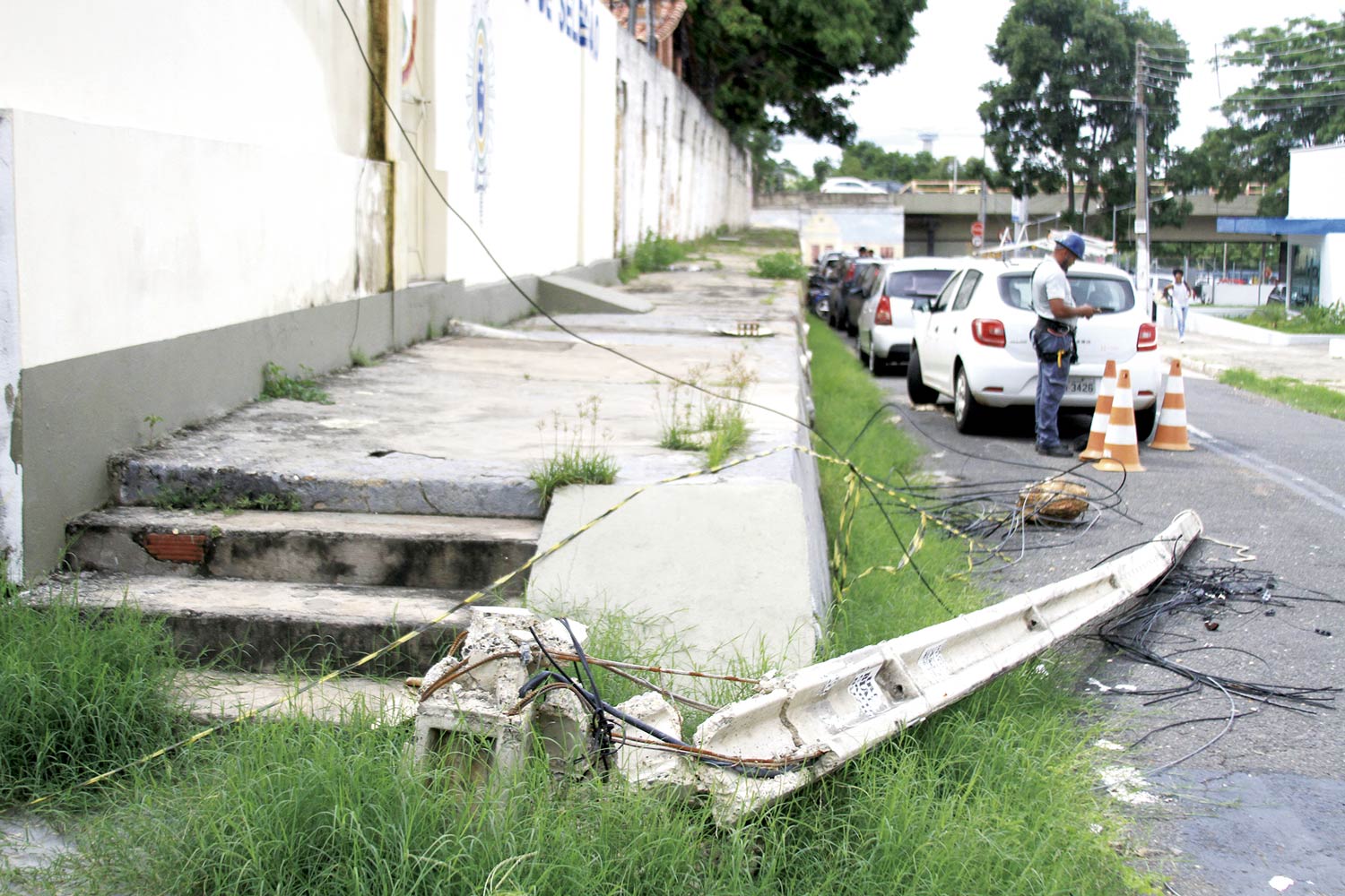 Um poste, aparentemente, de iluminação pública, encontra-se, caído, no cruzamento das Ruas Amapá com a Monsenhor Gil, no bairro Ilhotas, próximo ao Clube do Círculo Militar, chamou a atenção de transeuntes. O ouvinte da Rádio Meio Norte, Júnior Alves, contou que passou pelo local, no dia 25 de fevereiro e o poste já havia caído.