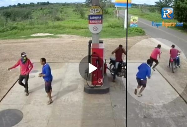 No final, quando a dupla ia embora, o frentista pegou um facão e correu atrás dos indivíduos.
