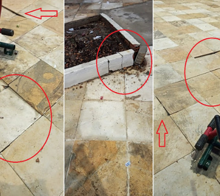 Segundo moradores do povoado, a praça está se destruindo sozinha aos poucos, principalmente com a chegada das chuvas. Eles relataram que a obra parece ter sido feita com uma mistura fraca de areia, barro e cimento e, por isso, está se desmanchando.