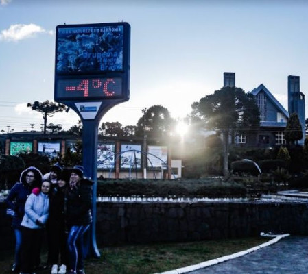 Há previsão de temperaturas negativas ao amanhecer nas serras gaúcha e catarinense, com a possibilidade de neve e chuva congelada nesses dois locais e no sul do Paraná.