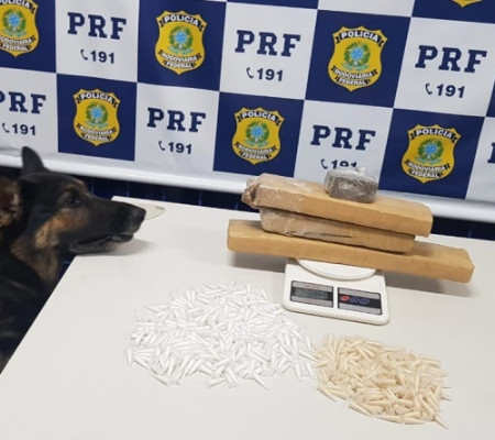 A prisão ocorreu após os policiais com ajuda de cães farejadores localizarem uma caixa com entorpecentes e balança de precisão no compartimento de carga do ônibus. Segundo a PRF, a droga apreendida está avaliada em R$ 44 mil.