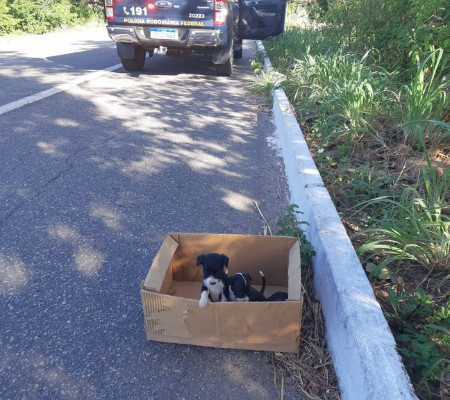 Policiais Rodoviários Federais resgataram na manhã desta quarta-feira, 06 de janeiro, três filhotes de cães da raça mestiça que haviam sido abandonados em uma caixa. A ação aconteceu na BR-343 no município de Piripiri.