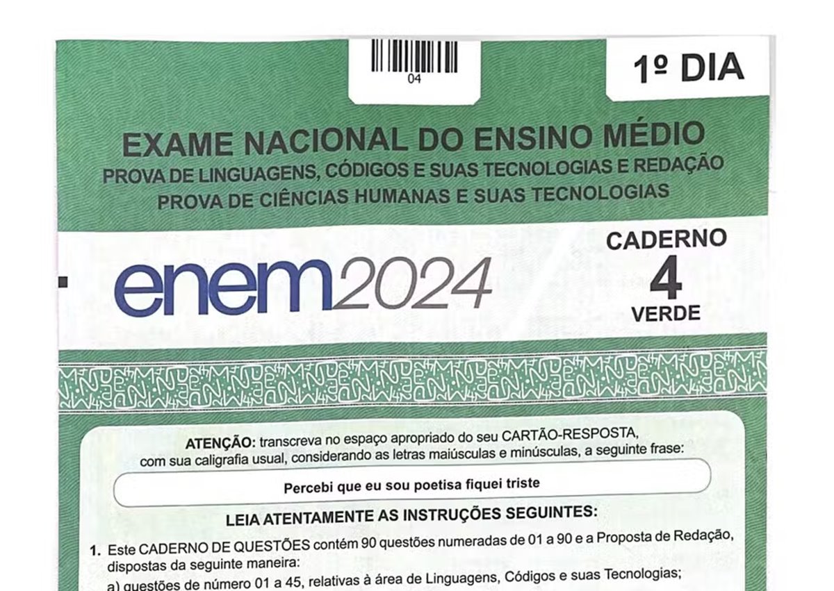 Os alunos que deixaram a prova do Enem 2024 antes das 18h30 deste domingo (3) não puderam levar o caderno de provas. Quem quiser conferir as 90 questões de múltipla escolha de linguagens, ciências humanas, e a redação pode baixar o PDF no link abaixo.