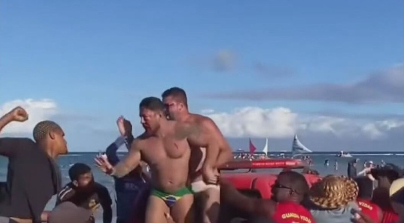 • A confusão generalizada foi registrada por banhistas. Um dos turistas ficou com lesões no rosto;