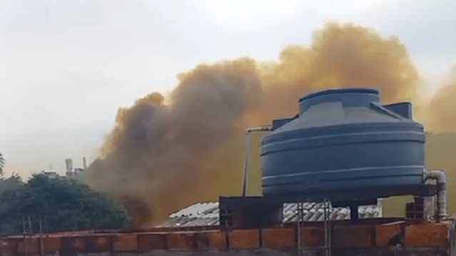 Na tarde desta sexta-feira (29), um produto químico em uma indústria na cidade de Barueri, região da Grande São Paulo, vazou e assustou moradores da região. As imagens foram registradas por populares que puderam visualizar uma fumaça densa com cores amarela e preta. Além disso, o vazamento ainda desencadeou fogo no local.