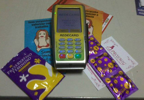 Foi no ano passado que as prostitutas mineiras passaram a oferecer a opção de pagamento em cartão de débito e crédito ? até mesmo parcelado. Essa oferta, uma parceria da associação com a Caixa Econômica Federal, também mira os turistas durante o Mundial.