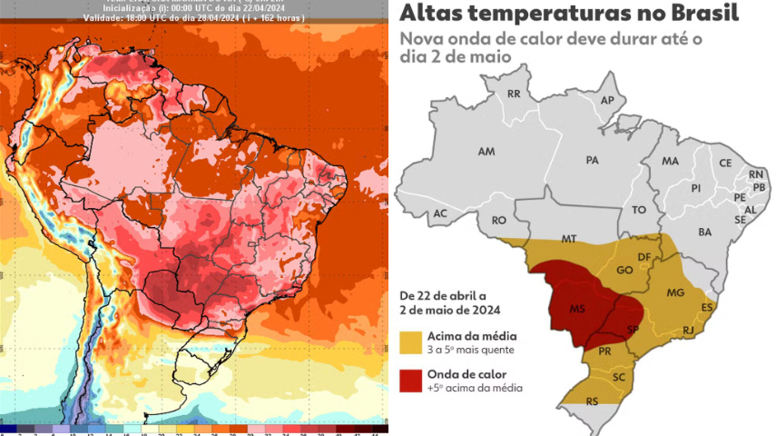 ALTA PRESSÃO: De acordo com a Climatempo, essa onda de calor é resultado da atuação de uma área de alta pressão na parte média da atmosfera, que impede a chegada de frentes frias ao Centro-Oeste e Sudeste do país. O bloqueio atmosférico mantém o ar seco e quente, elevando as temperaturas nos próximos dias.
