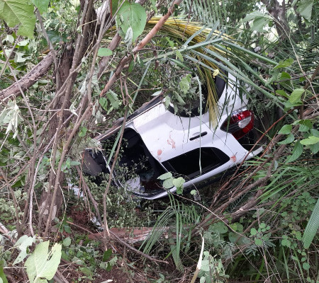 O condutor do carro tentou fazer uma ultrapassagem, com a velocidade, o mesmo perdeu o controle do automóvel.