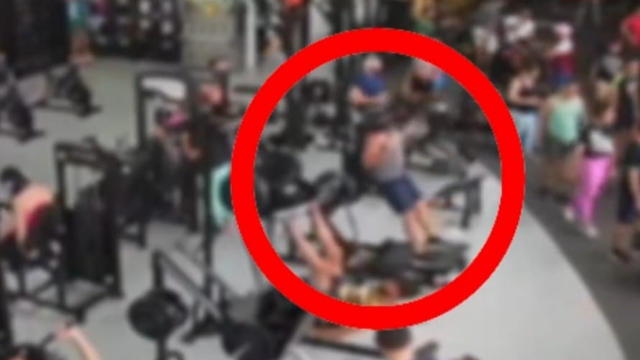 As cenas foram registradas pelas câmeras de segurança do local e mostram o momento em que a máquina de agachamento cai sobre o homem, que estava sentado na base do aparelho. As pessoas ao redor correm para ajudar e erguer a parte sobre suas costas.