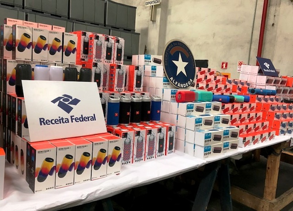 Ao menos 39.174 caixas de som falsificadas foram apreendidas pela Alfândega do Porto de Santos, no litoral de São Paulo, informou a Receita Federal nesta terça-feira (5). Os produtos, provenientes da China, estão avaliados em R$ 3.969.332 e seriam destinados ao comércio popular na capital paulista.