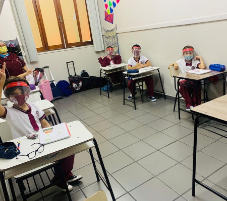 Laura disse ainda que, na entrada da escola, os alunos receberam kits pessoais com máscaras e viseiras e passam por triagem com aferição de temperatura.