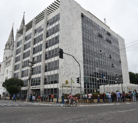 A sede da Receita Federal, no Centro da Capital, ainda registra grande fluxo de pessoas na manhã desta terça (14).