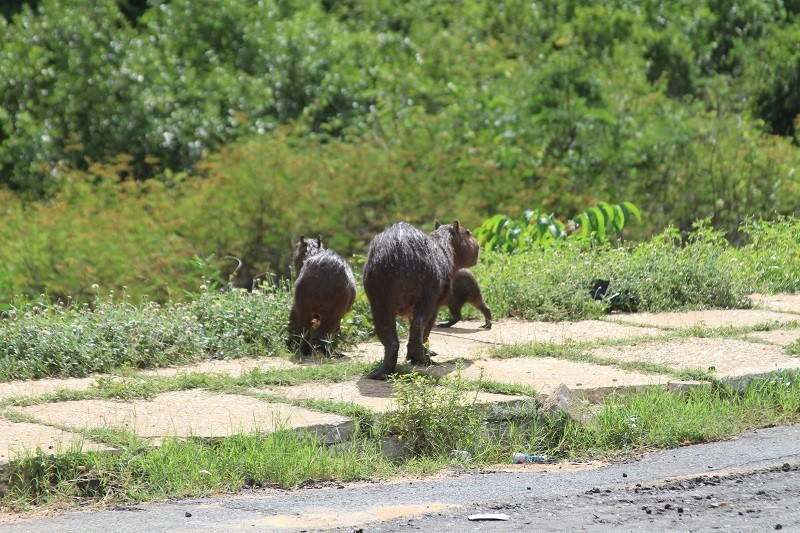 A reportagem do Jornal Meio Norte, a caminho de uma pauta, encontrou um família de capivaras em uma das avenidas que dá acesso ao setor de esportes da Universidade Federal do Piauí (Ufpi) na tarde desta quinta-feira (7). Foram flagrados três animais da espécie Hydrochoerus hydrochaeris, sendo um maior, um menor e um filhote.