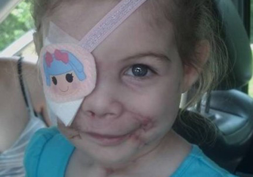 Em abril deste ano, a pequena Victoria perdeu o olho direito e ficou com cicatrizes na boca e no nariz após ter sido vítima de um cão da raça pitbull.