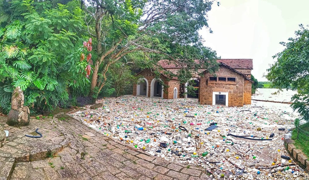 O Parque de Lavras ficou coberto de muita sujeira, principalmente por garrafas pet. A água também transbordou na Rua 24 de Outubro e a via precisou ser interditada.