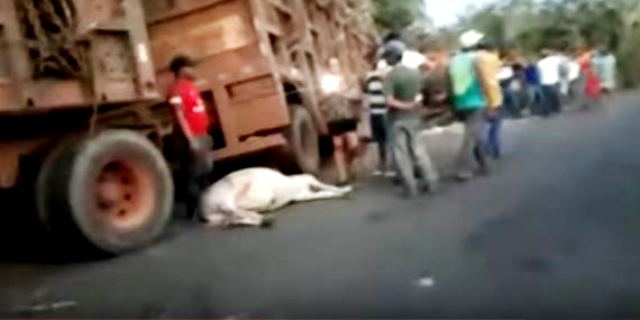 Na ocasião, uma vaca que transitava na pista foi atingida pelo treminhão e morreu ainda no local. A suspeita é de que o motorista tentou desviar do animal e teria perdido o controle do veículo.