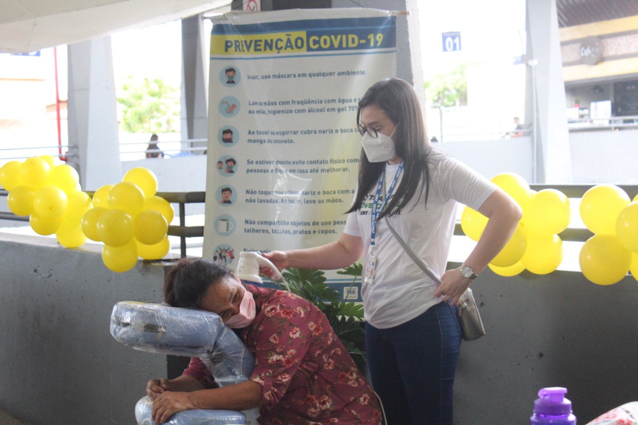 Fisoterapia na Rodoviária de Teresina (Foto: Raissa Morais)Além de informações sobre o uso de cinto de segurança, sessão de massoterapia e orientações sobre saúde mental, um café da manhã complementou a ação. “Nós trouxemos uma ótima equipe para mostrar que é preciso cuidar da postura, discutir saúde mental e também conhecer o que pode minimizar problemas de saúde e acidentes no trânsito”, disse Érica Campelo, coordenadora da ação.