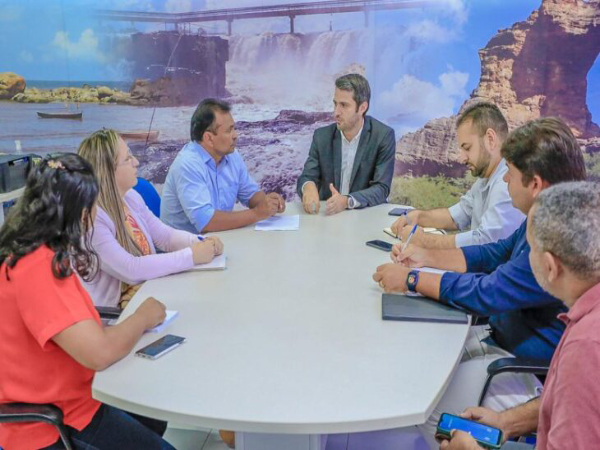 O secretário de Assistência Técnica e Defesa Agropecuária, Fábio Abreu, e equipe técnica da Sada se reuniram com o diretor-presidente da Agência de Fomento e Desenvolvimento do Estado do Piauí, Feliphe Araújo, para tratar sobre parcerias e discutir a retomada do termo de cooperação entre as pastas.