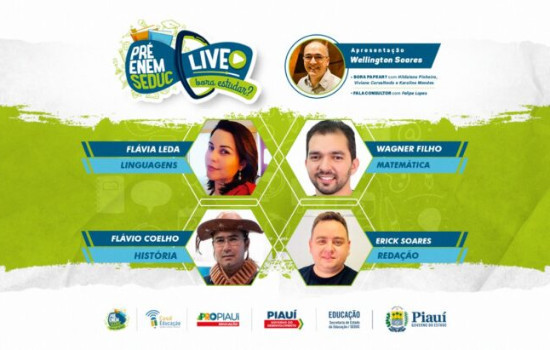 A edição contará com os professores Flávia Leda, para Linguagens; Wagner Filho, abordando questões de Matemática; Flávio Coelho com o conteúdo de História; e Erick Soares com Redação. As aulas serão transmitidas pela TV Antares (Canal 2.1), Facebook e YouTube do Canal Educação.