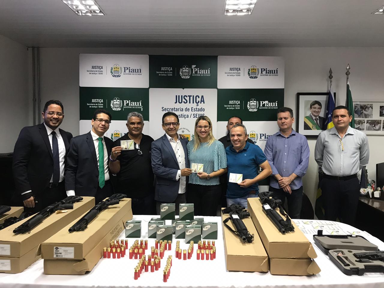 O Sistema Prisional do Piauí recebeu, nesta terça-feira (19), nova etapa de carabinas e pistolas calibre 12. Na solenidade de entrega do armamento, realizada na sede da Secretaria de Estado da Justiça (Sejus), também foram entregues novas carteiras funcionais a agentes penitenciários.