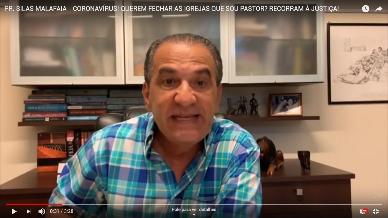 "Os senhores [governadores] podem tratar de ir na Justiça pegar uma liminar, porque os senhores não têm poder de fechar a igreja", afirmou no vídeo.